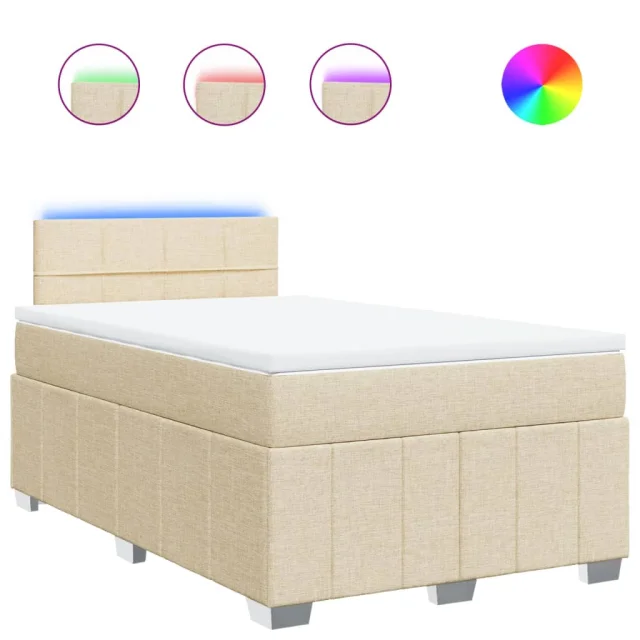 vidaXL Box spring postelja z vzmetnico krem 120x200 cm blago