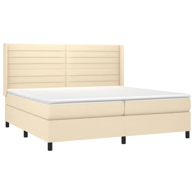vidaXL Box spring postelja z vzmetnico krem 200x200 cm blago