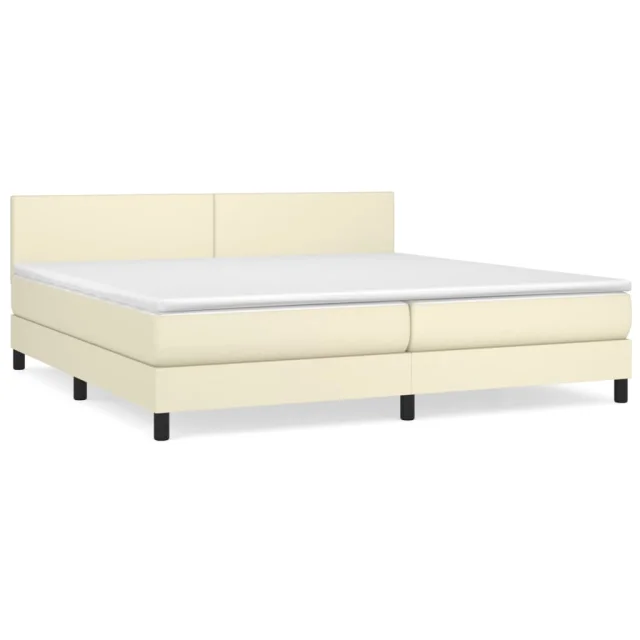 vidaXL Box spring postelja z vzmetnico krem 200x200 cm umetno usnje