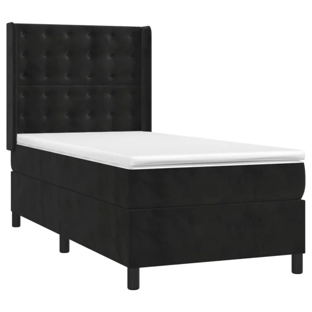 vidaXL Box spring postelja z vzmetnico LED črna 100x200 cm žamet