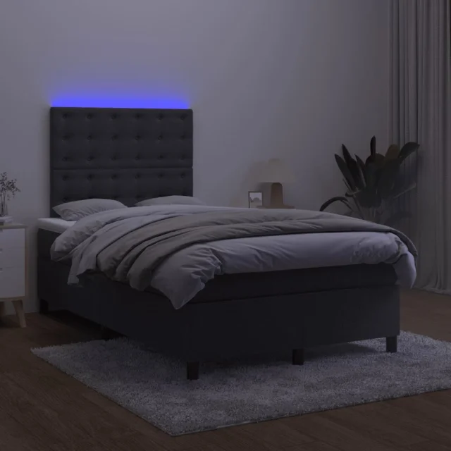vidaXL Box spring postelja z vzmetnico LED črna 120x200 cm žamet