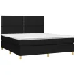 vidaXL Box spring postelja z vzmetnico LED črna 160x200 cm blago