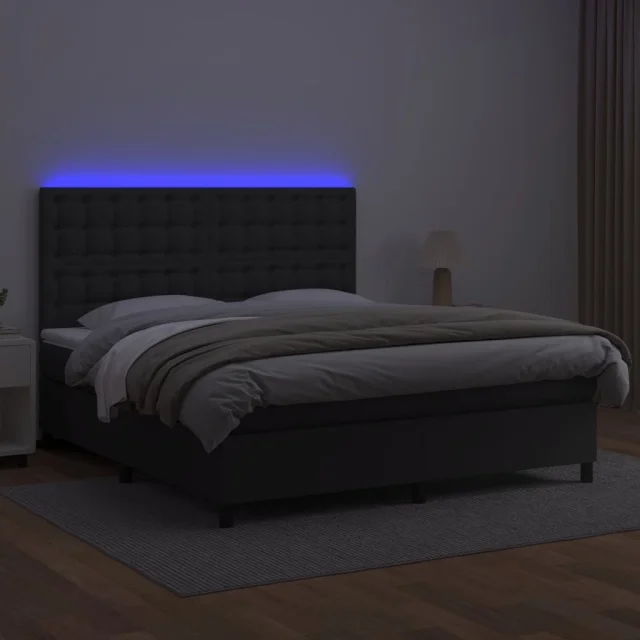 vidaXL Box spring postelja z vzmetnico LED črna 180x200cm umetno usnje