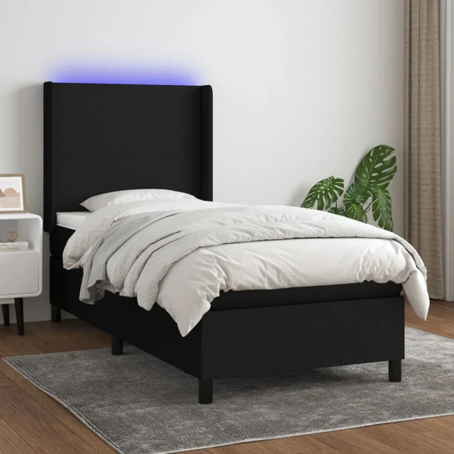 vidaXL Box spring postelja z vzmetnico LED črna 80x200 cm blago