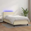 vidaXL Box spring postelja z vzmetnico LED krem 100x200cm umetno usnje