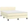 vidaXL Box spring postelja z vzmetnico LED krem 140x200cm umetno usnje