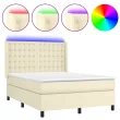 vidaXL Box spring postelja z vzmetnico LED krem 140x200cm umetno usnje