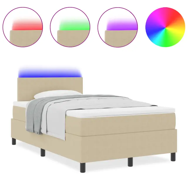 vidaXL Box Spring Postelja z Vzmetnico & LED Lučko Bež 120x200 cm Žametna Tkanina