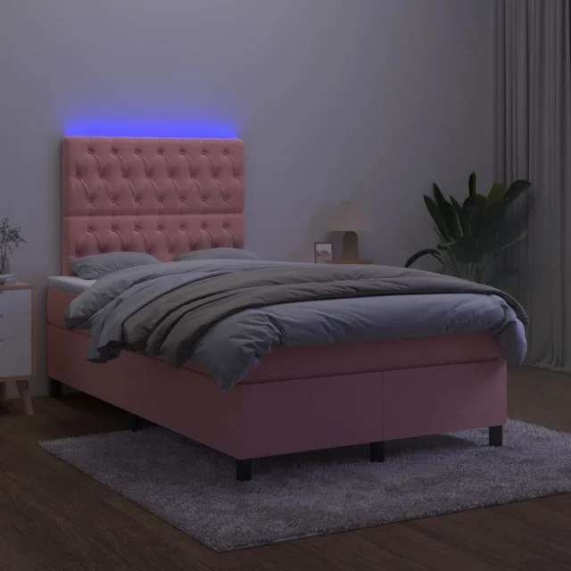 vidaXL Box spring postelja z vzmetnico LED roza 120x200 cm žamet