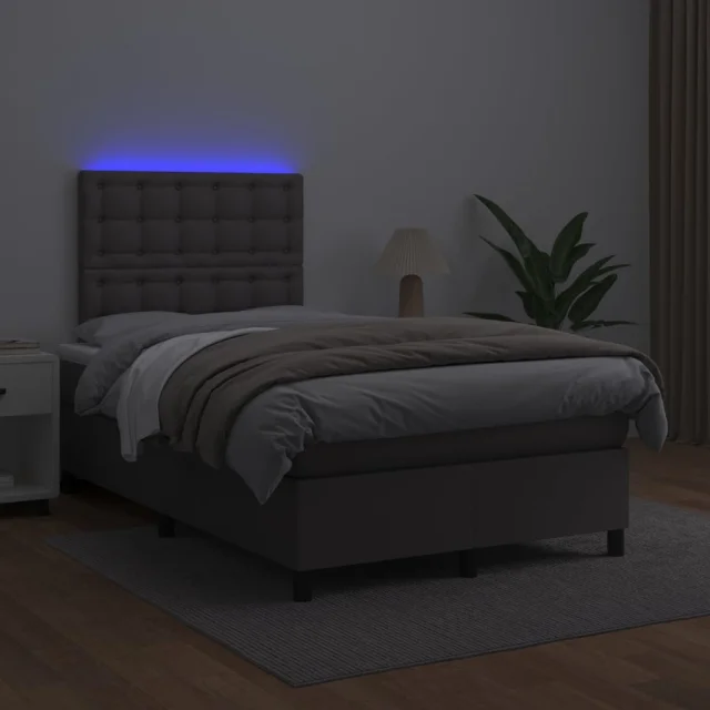 vidaXL Box spring postelja z vzmetnico LED siva 120x200cm umetno usnje