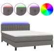vidaXL Box spring postelja z vzmetnico LED siva 140x190cm umetno usnje