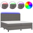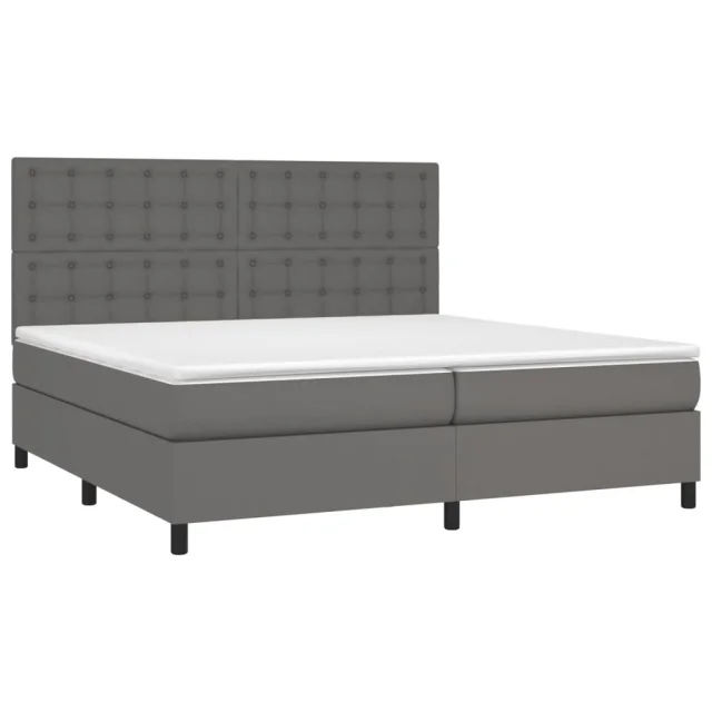vidaXL Box spring postelja z vzmetnico LED siva 200x200cm umetno usnje