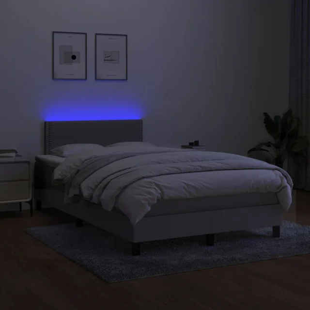 vidaXL Box spring postelja z vzmetnico LED sv. siva 120x200 cm blago
