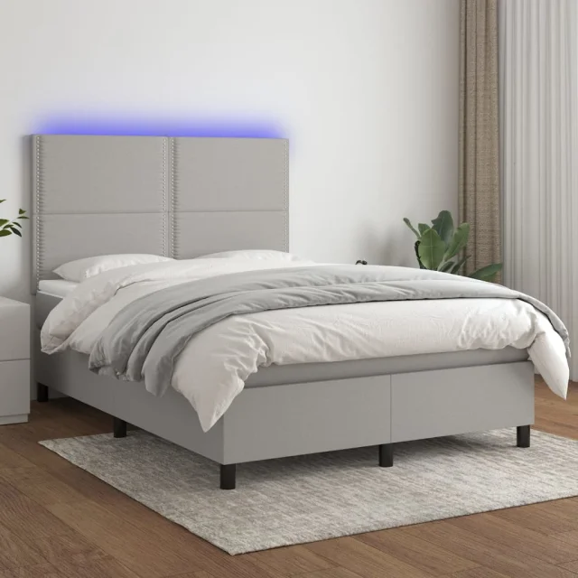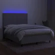 vidaXL Box spring postelja z vzmetnico LED sv. siva 140x200 cm blago