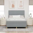 Ta box spring postelja ima sodoben minimalističen slog, kar jo naredi za čudovit dodatek v tvoji spalnici. Svetlo siva tkanina in elegantne bež lesene noge se združujejo v pameten in funkcionalen kos.