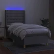 vidaXL Box spring postelja z vzmetnico LED svetlo siva 90x200 cm blago