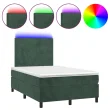 vidaXL Box spring postelja z vzmetnico LED tem. zelena 120x200cm žamet