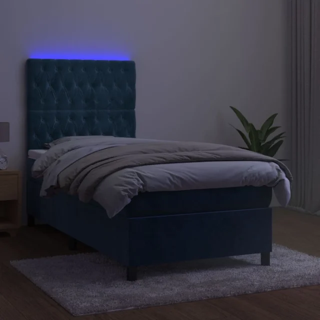 vidaXL Box spring postelja z vzmetnico LED temno modra 100x200cm žamet