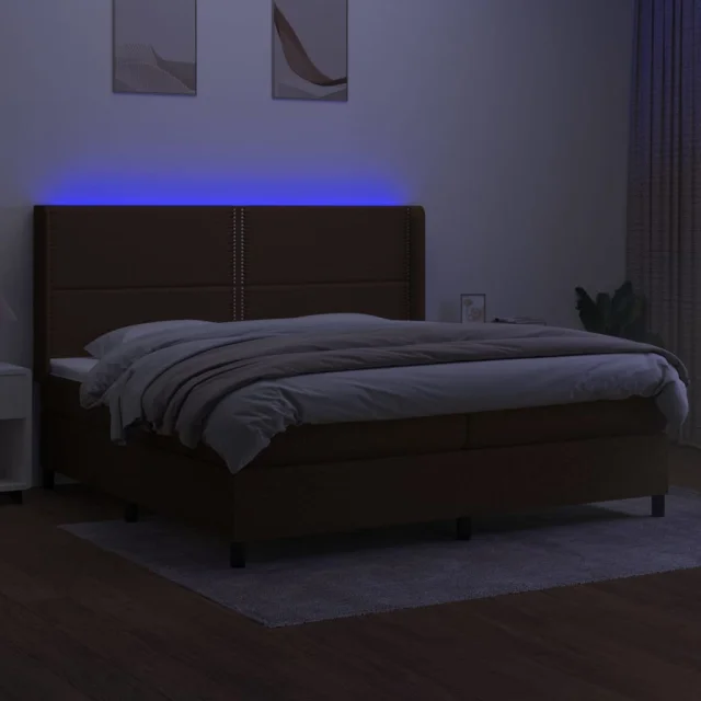 vidaXL Box spring postelja z vzmetnico LED temno rjava 200x200cm blago