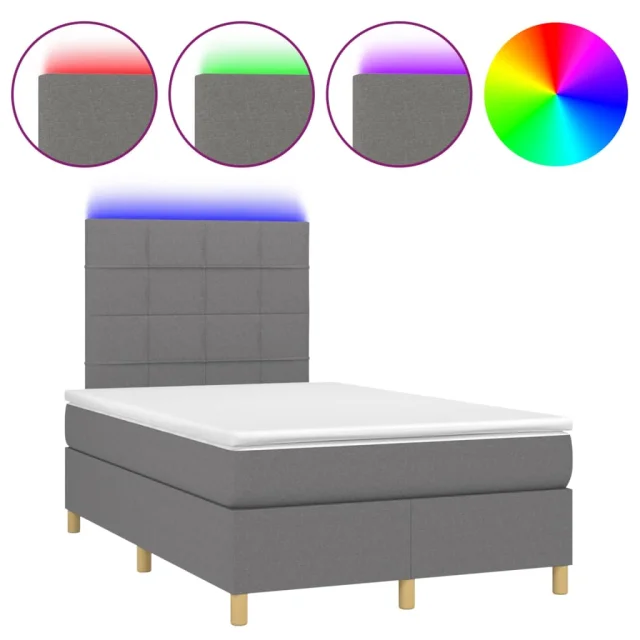 vidaXL Box spring postelja z vzmetnico LED temno siva 120x200 cm blago