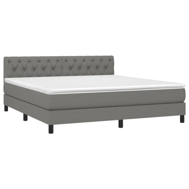 vidaXL Box spring postelja z vzmetnico LED temno siva 160x200 cm blago