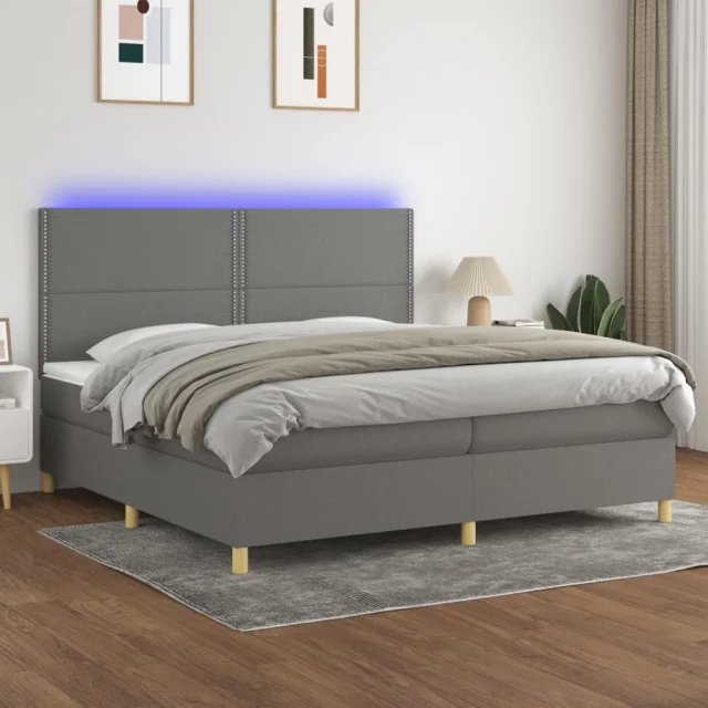vidaXL Box spring postelja z vzmetnico LED temno siva 200x200 cm blago