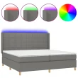 vidaXL Box spring postelja z vzmetnico LED temno siva 200x200 cm blago