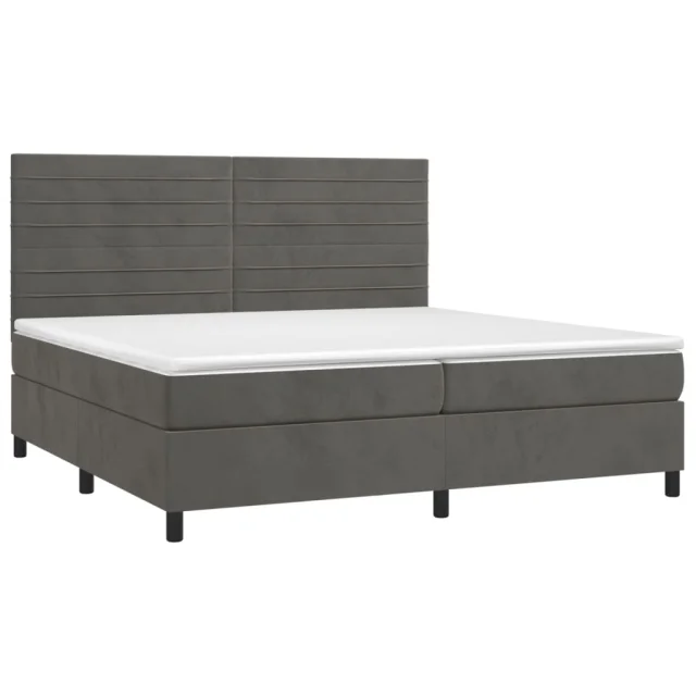 vidaXL Box spring postelja z vzmetnico LED temno siva 200x200 cm žamet
