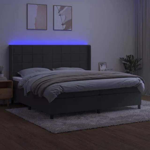 vidaXL Box spring postelja z vzmetnico LED temno siva 200x200 cm žamet