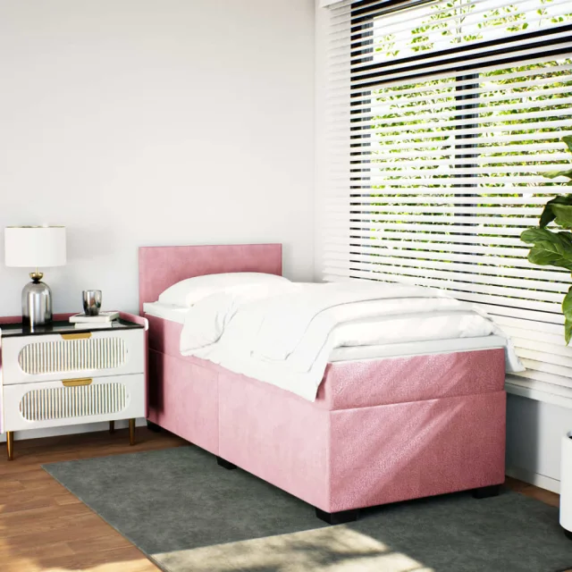 vidaXL Box spring postelja z vzmetnico roza 90x200 cm žamet