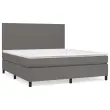 vidaXL Box spring postelja z vzmetnico siv 160x200 cm umetno usnje