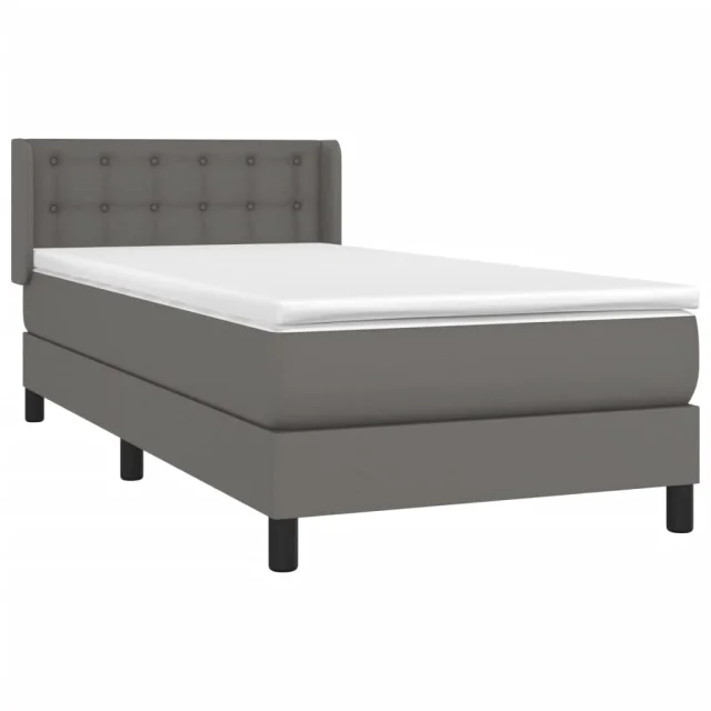 vidaXL Box spring postelja z vzmetnico siva 100x200 cm umetno usnje
