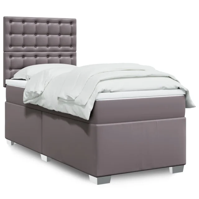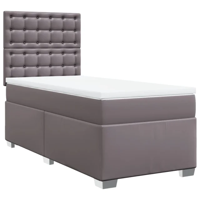vidaXL Box spring postelja z vzmetnico siva 100x200 cm umetno usnje