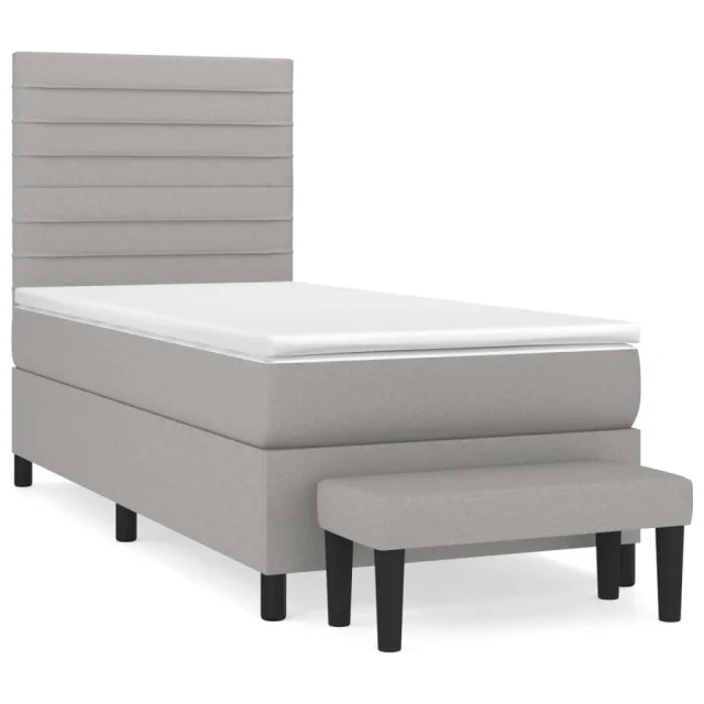vidaXL Box spring postelja z vzmetnico svetlo siv 100x200 cm blago