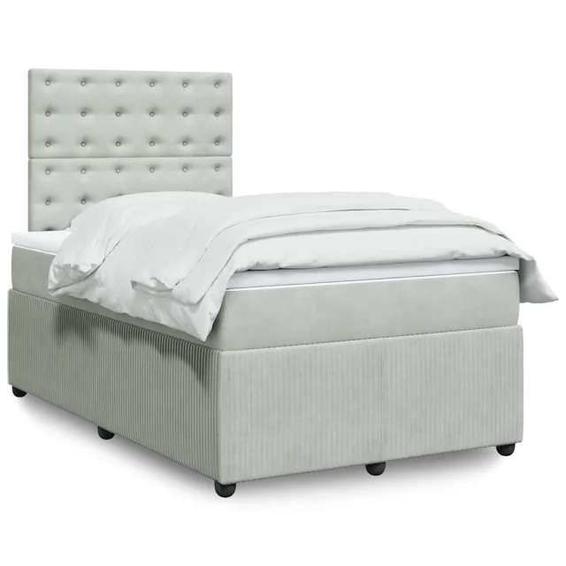 vidaXL Box spring postelja z vzmetnico svetlo siva 120x200 cm žamet