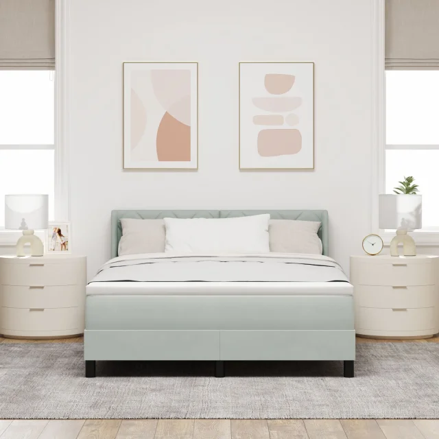vidaXL Box Spring postelja z vzmetnico svetlo siva 140x190 cm žamet