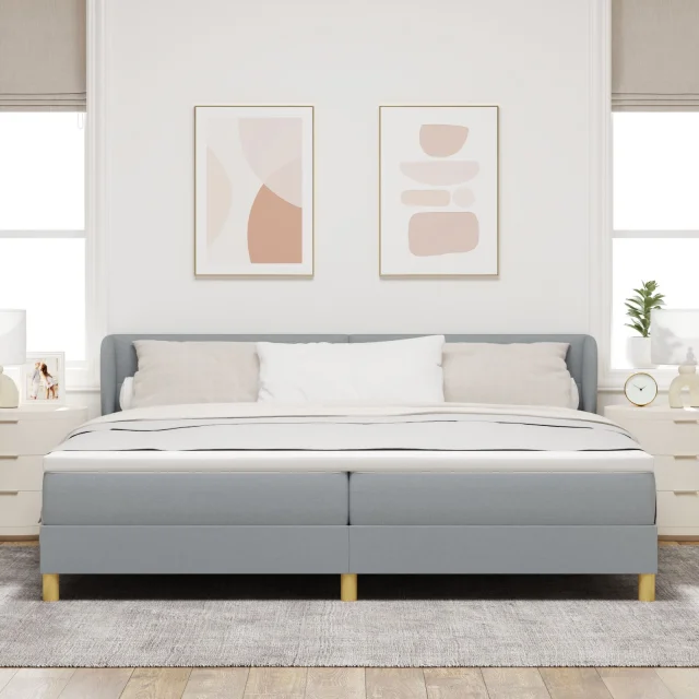vidaXL Box spring postelja z vzmetnico, svetlo siva, 200x200 cm, tkanina