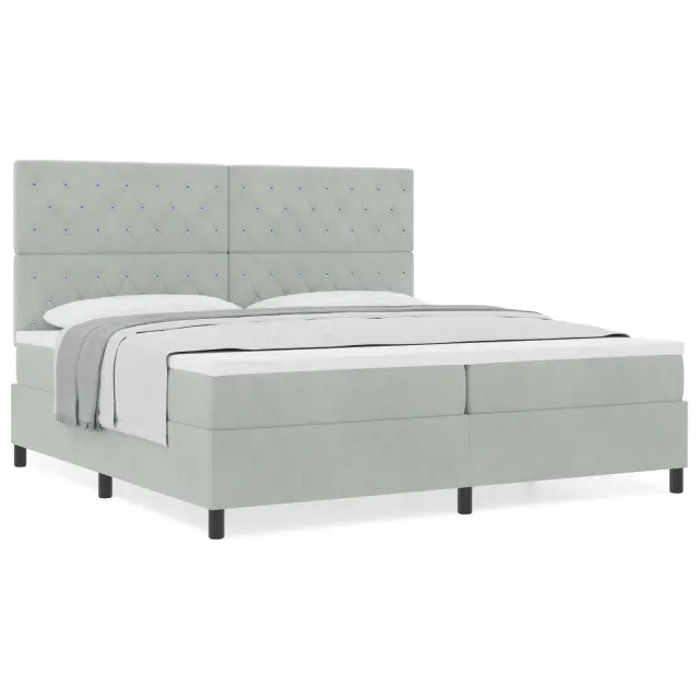 vidaXL Box Spring postelja z vzmetnico svetlo siva 200x200 cm žamet