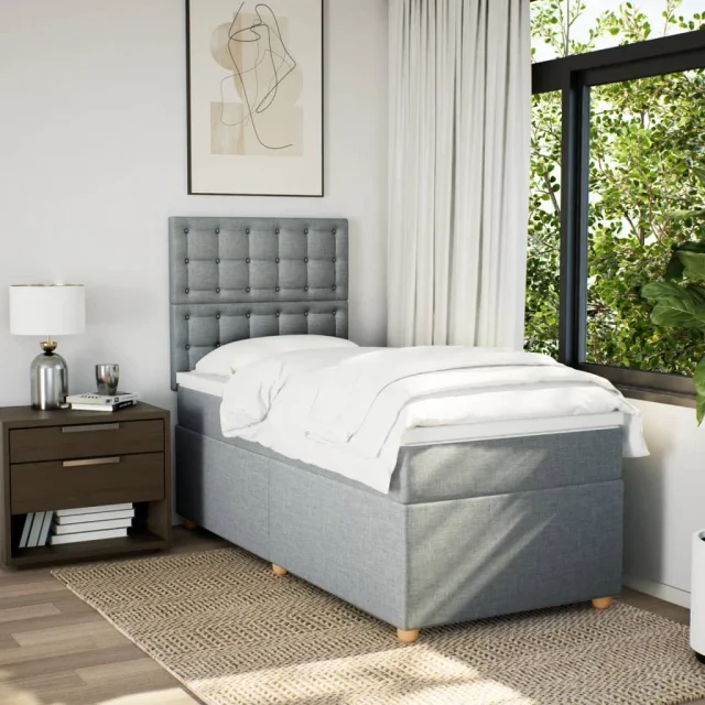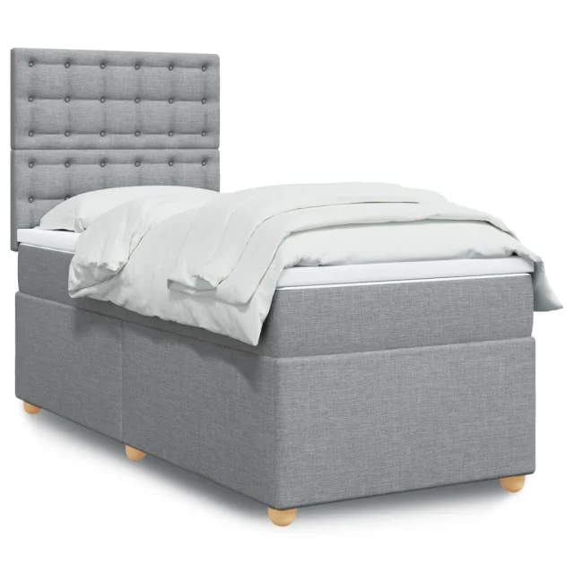 vidaXL Box spring postelja z vzmetnico svetlo siva 90x190 cm blago