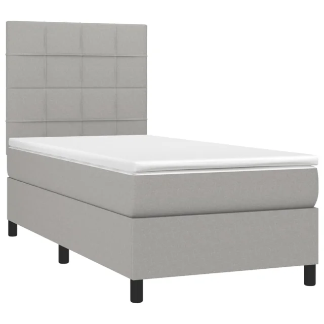 vidaXL Box spring postelja z vzmetnico svetlo siva 90x200 cm blago