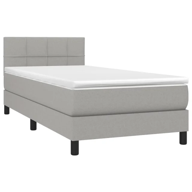 vidaXL Box spring postelja z vzmetnico svetlo siva 90x200 cm blago