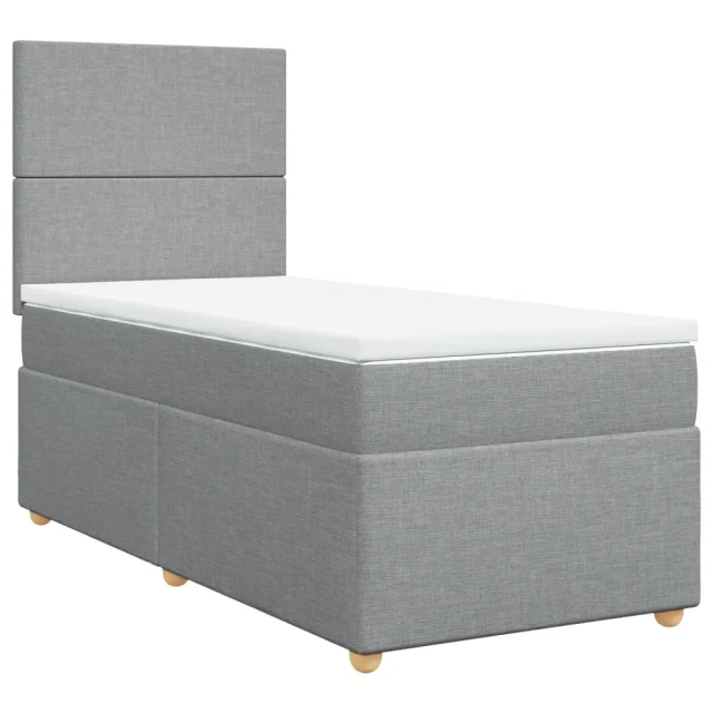 vidaXL Box spring postelja z vzmetnico svetlo siva 90x200 cm blago