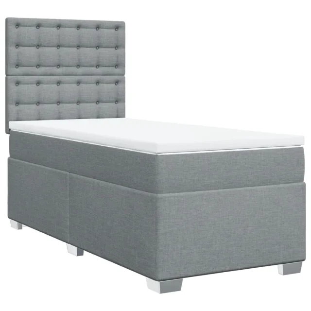 vidaXL Box spring postelja z vzmetnico svetlo siva 90x200 cm blago