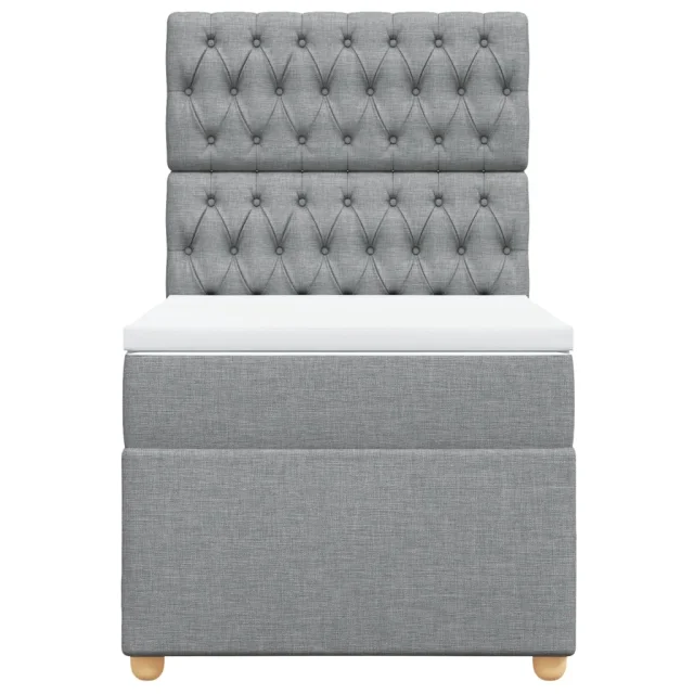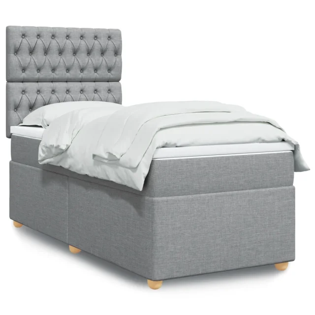 vidaXL Box spring postelja z vzmetnico svetlo siva 90x200 cm blago