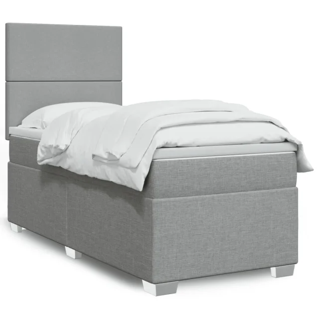 vidaXL Box spring postelja z vzmetnico svetlo siva 90x200 cm blago