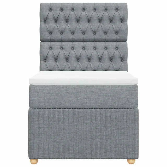 vidaXL Box spring postelja z vzmetnico svetlo siva 90x200 cm blago