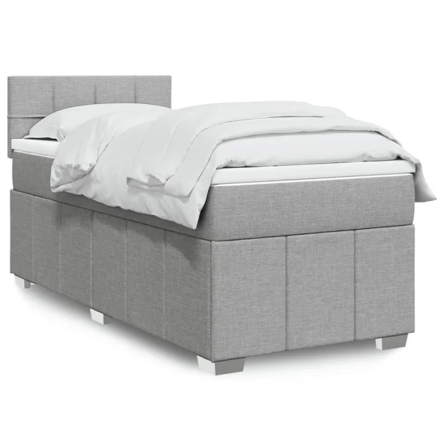 vidaXL Box spring postelja z vzmetnico svetlo siva 90x200 cm blago