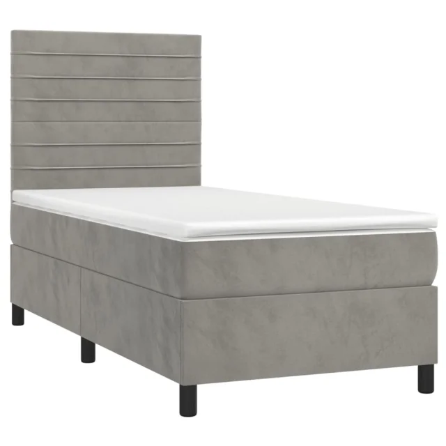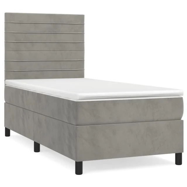 vidaXL Box spring postelja z vzmetnico svetlo siva 90x200 cm žamet