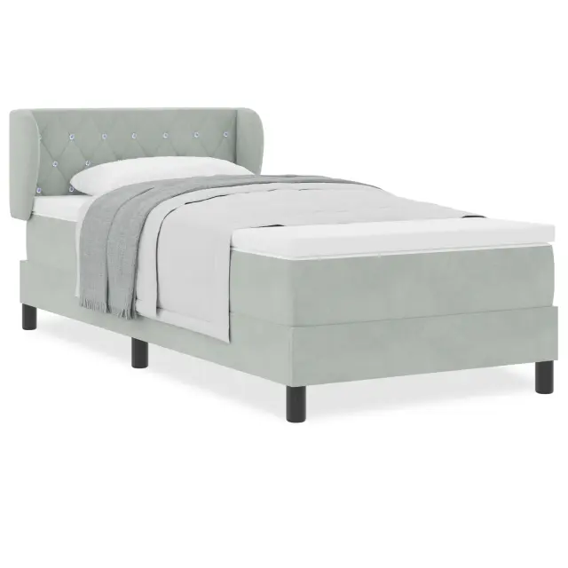 vidaXL Box Spring Postelja z Vzmetnico Svetlo Siva 90x200 cm Žamet