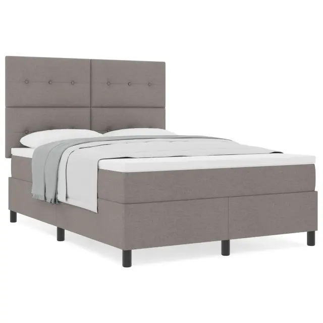Ta postelja z box springom prinaša sodoben videz in praktične lastnosti, ki ponujajo odlično rešitev za spanje v tvoji spalnici. Z njeno taupe tkanino in močnimi lesenimi nogami, doda slog tvoji sobi, hkrati pa ostaja udobna in trpežna.